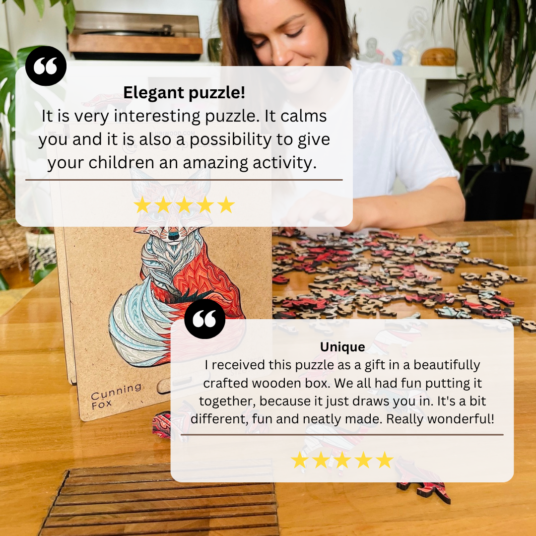 This raccoon puzzle is adorned with delicate watercolor flowers and unique pieces shaped like animals, leaves, and hidden woodland surprises, all expertly laser-cut in premium wood. It’s the perfect way to bring a touch of woodland whimsy to your next puzzling adventure.